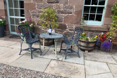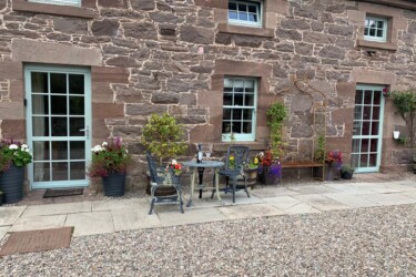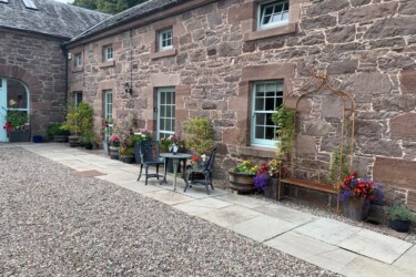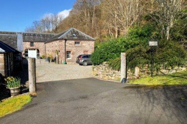 This delightful one-bedroom, two-bathroom cottage has stunning south-facing views and the highest level of comfort and design. It is at ground floor level with no steps, internal or external, so is access friendly. Under the current legislation in Scotland for self-catering premises the cottage is licensed for 2 overnight guests. The cottage is a self-contained annex to the main house, Locherlour Mill a B listed historic building, with its own entrance and the privacy of an enclosed courtyard area. It is furnished and decorated to a high standard boasting character, charm and warmth. Guests also have the use of the owner’s large rear garden (there are steps up to this garden), with tranquil woods at the back of the property for interesting walks and for spotting red squirrels and deer.